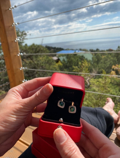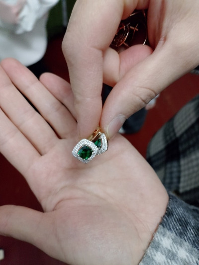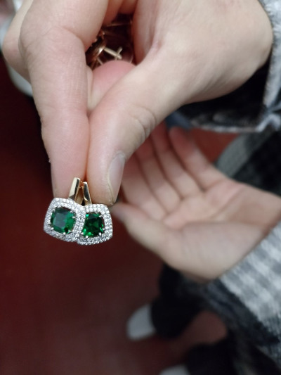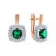 Золотые серьги с фианитами и наноситаллами изумруд