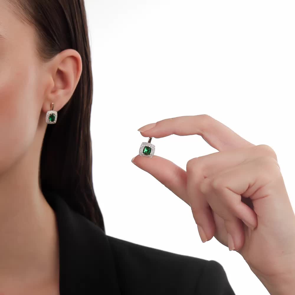 В редких случаях характеристики украшения или упаковка могут иметь отличия от представленных на фото или в описании.Серьги с 2 ситаллами изумруд;