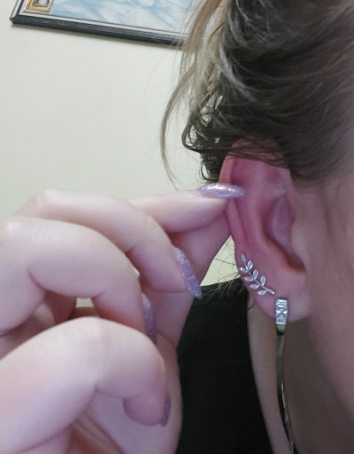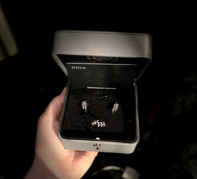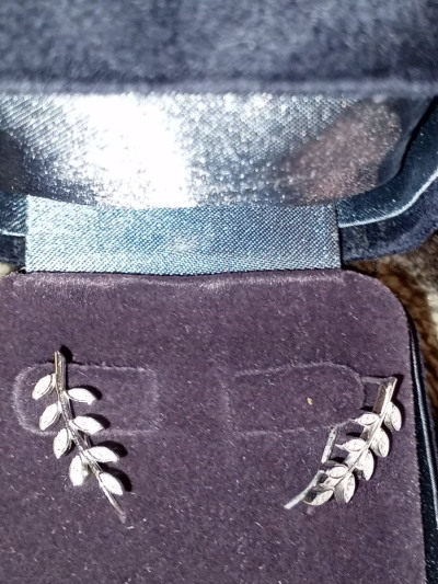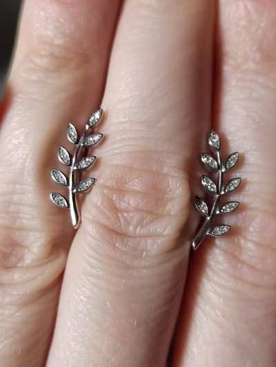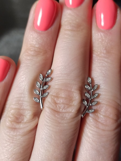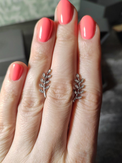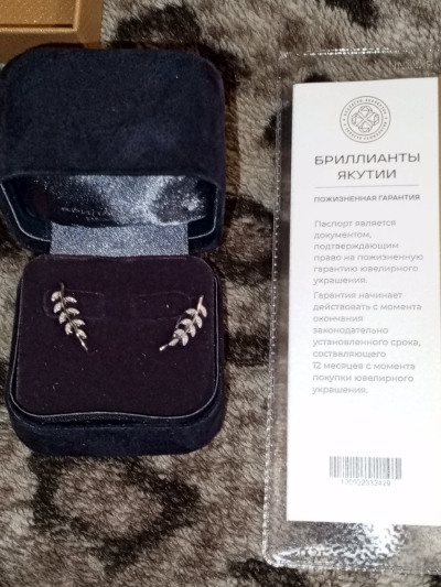 Весенние, воздушные, чудесные серьги. Отлично держатся в ушах весь день, не сползают. Единственное - если для вас важен блеск бриллиантов, то здесь заметного блеска нет. Но я влюбилась в саму форму, я бы и с фианитом, и вообще без вставки взяла. Лучший вариант на тему "ветка с листьями"