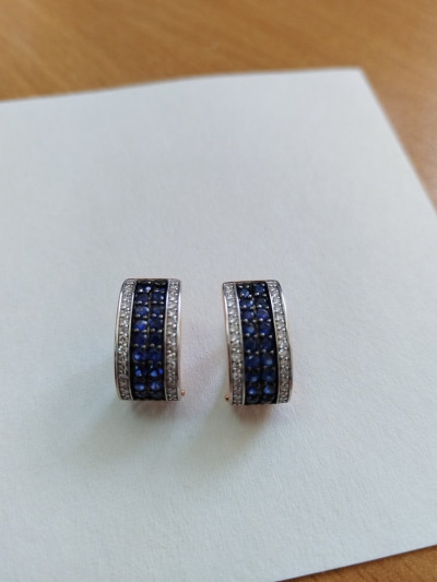 Золотые серьги с бриллиантами природными и сапфирами природными