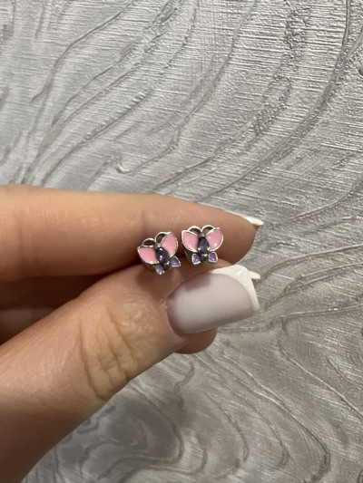 Аккуратные серебряные серьги-пусеты в форме бабочек с нежной сиренево-розовой эмалью и сверкающим фианитом огранки маркиз оттенка под аметист. Аккуратная модель сережек-пусет с закручивающейся застежкой порадует как маленьких модниц, так и взрослых любительниц миниатюрных украшений. Милая форма понравится и бунтующим подросткам, предпочитающий украшения в стиле кавай и аниме. В комплект можно подобрать колечко или подвеску.