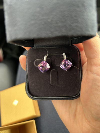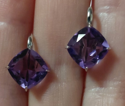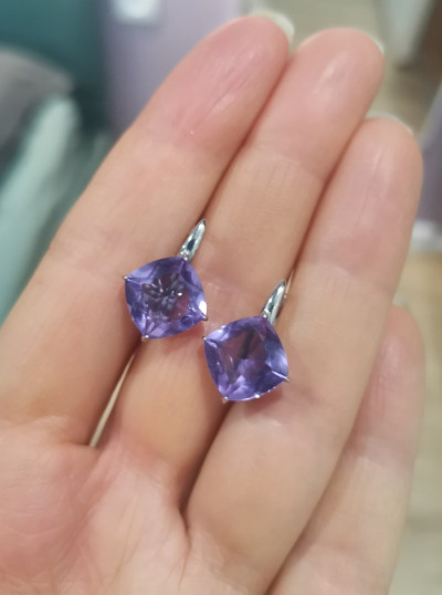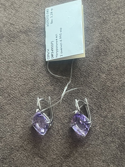 Очарована этими серьгами. Аметист в белом золоте. Смотрится очень красиво и элегантно