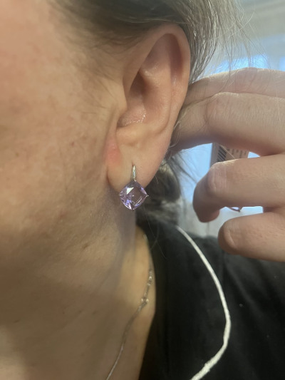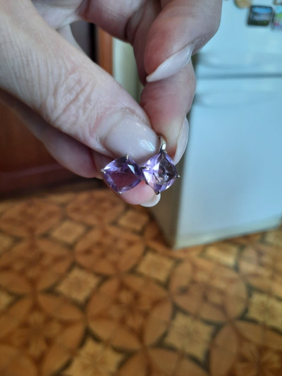 Серьги с аметистом искала несколько лет. И изначально эти добавила в корзину просто чтобы заодно померить - цена кусалась. Но они они так хорошо сели, что жаба проиграла и купила их 😁 Понравилась их универсальность - и с джинсами, и с платьем, и с пиджак ом. Хорошо будут смотреться летом.