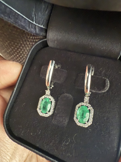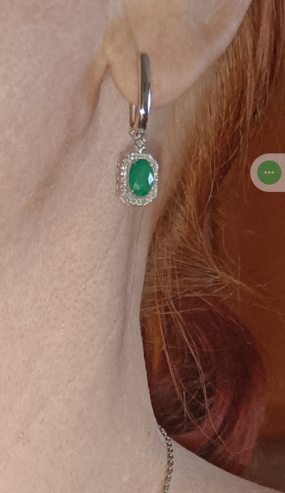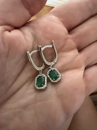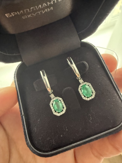 Серьги очаровательные, очень красивые изумруды одного цвета, без темных вкраплений, камни насыщенного зеленого цвета и в сочетании с бриллиантами вызывают игру света и восхищение, советую