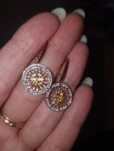 Муж подарил кольцо с природными сапфирами, хотелось к нему подобрать серьги. Но найти серьги с желтыми природными сапфирами сложно! Искала подарок себе к дню рождения и,о счастье, нашла эти серьги!!! Потрясающие серьги,я очень довольна покупкой!
