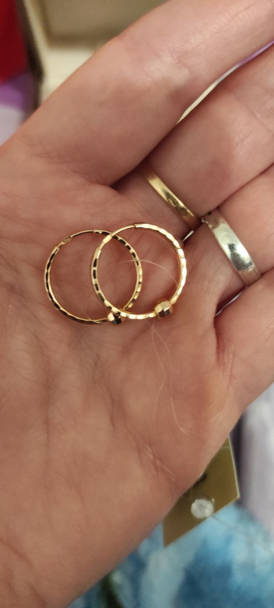 Сережки мне заказали в подарок к ДР!Очень понравились,боялась что будут слишком маленькими,но реальность превзошла все ожидания,колечки идеальные,в ушах смотрятся отлично!Всем рекомендую