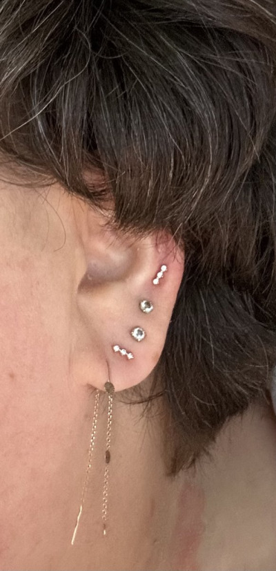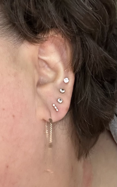 Небольшие серьги гвоздики на дополнительные проколы . Будем смотреть как поведут себя в эксплуатации.