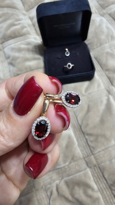 Очень красивые, бриллианты и камень сверкают дорого, мочку уха не тянут вниз, в носке комфортно и можно надевать хоть каждый день, как с повседневными образами, так и с вечерними! Хочу теперь кольцо, что идет комплектом.