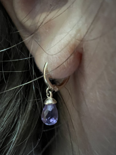 В редких случаях характеристики украшения или упаковка могут иметь отличия от представленных на фото или в описании.Серьги с 2 аметистами природными, огранка бриолет капля, тип огранки Б;