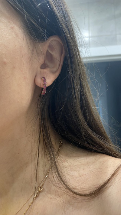 Сережки супер. Собрала кучу комплиментов,застежка крепкая ,ношу не снимая ,спать не мешают