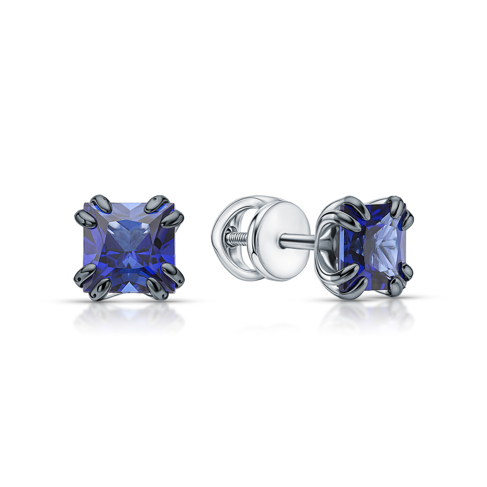 Серьги с 2 сапфирами выращенными, 2.78 карат;