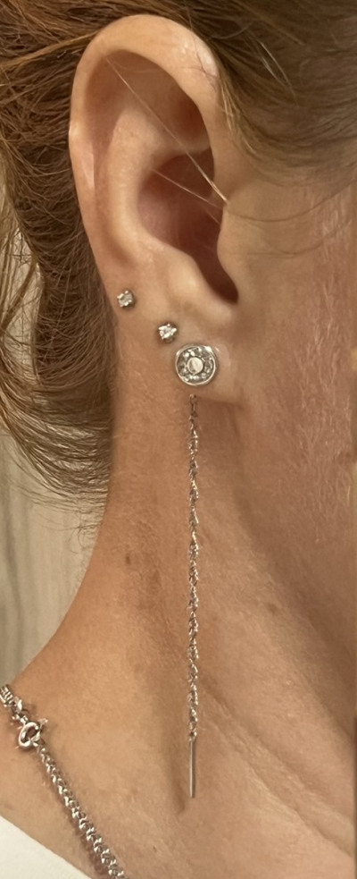 Очень красивые серьги. Они объёмные, хорошо видны на ушках. Ношу с заглушками. Люблю белое золото, а бриллианты в белом золоте красиво играют и переливаются. Серьги похожи на маленькие шайбочки. Производство Кострома, что очень порадовало. Купила в обмен старого на новое, вышло бюджетно. Покупкой очень довольна. Рекомендую кто любит серьги протяжки.