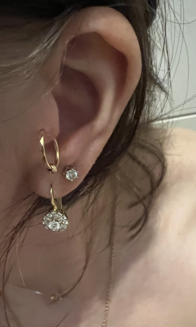 Заказывала другие серьги на сайте, и те - другие в живую не понравились. Девушка консультант предложила на выбор несколько других, в итоге отобрала 3 пары, которые мне понравились, и выбирала уже между ними) И вот эти серьги были там, среди трёх, почему выбор пал на них? На сайте бы не заметила, и в общем-то - не заметила. Тем более ни одного отзыва не было. Но в живую! Боже, в живую эти серьге побеждают всех, крупные, почти 3 грамма, крепкие/надёжные, как солнышки. Бриллиант по середине, и 12 вокруг, завораживающе переливаются на солнце, смотрятся шикарно!! Я правда довольна, обошлись с моими бонусами) Это дешево, но может потому, что эта новая модель/коллекция, и отзывов не было, однозначно вырастут у в цене. Это всё-таки не фианиты, которые через полгода-год затрутся и потеряют блеск, А бриллианты всегда будут сверкать! Поэтому девушки, не жалейте на себя денюжку, переплатите, но возьмите бриллиантики, хотя бы с маленьким карататиком, и со временем поймете/увидите разницу)