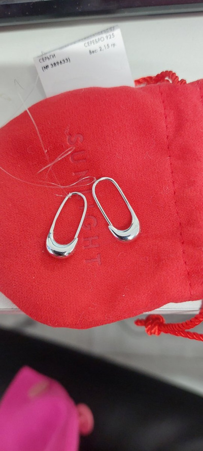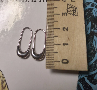 Серьги лёгкие, минималистичный. Проба на сережке стоит сзади. При одевании нужно отогнуть кончик вбок достаточно чтобы мочка прошла. Купила с хорошей скидкой.