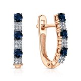 Золотые серьги с бриллиантами природными и сапфирами природными