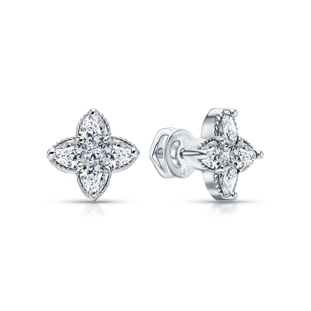 Серьги с 8 бриллиантами выращенными, 1.14 карат, огранка груша 56 граней, цвет 3, чистота 5, тип огранки А;
