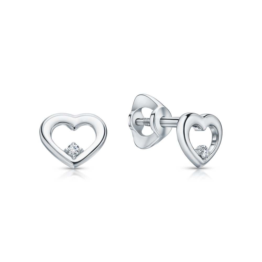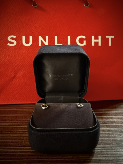 Серьги с 2 бриллиантами природными, 0.01 карат, огранка круг 17 граней, цвет 3, чистота 3, тип огранки Б;
