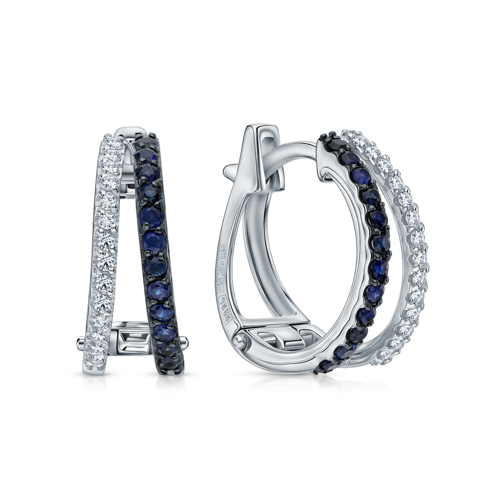 Золотые серьги с бриллиантами природными и сапфирами природными