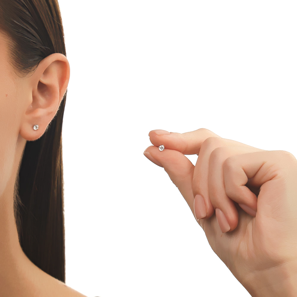 Серьги с 2 бриллиантами выращенными, 0.32 карат, огранка круг 57 граней, цвет 3, чистота 5, тип огранки А;