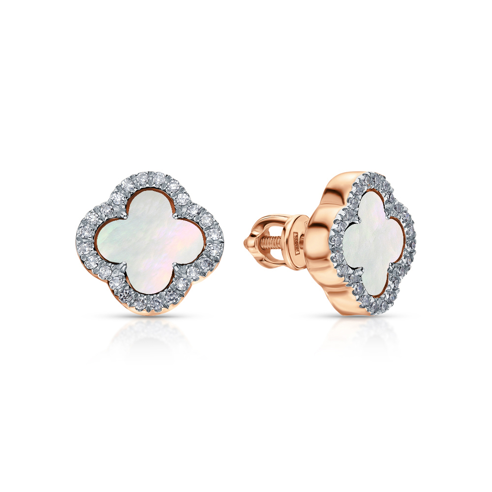 Серьги с 48 бриллиантами природными, 0.18 карат, огранка круг 17 граней, цвет 2, чистота 2, тип огранки А;