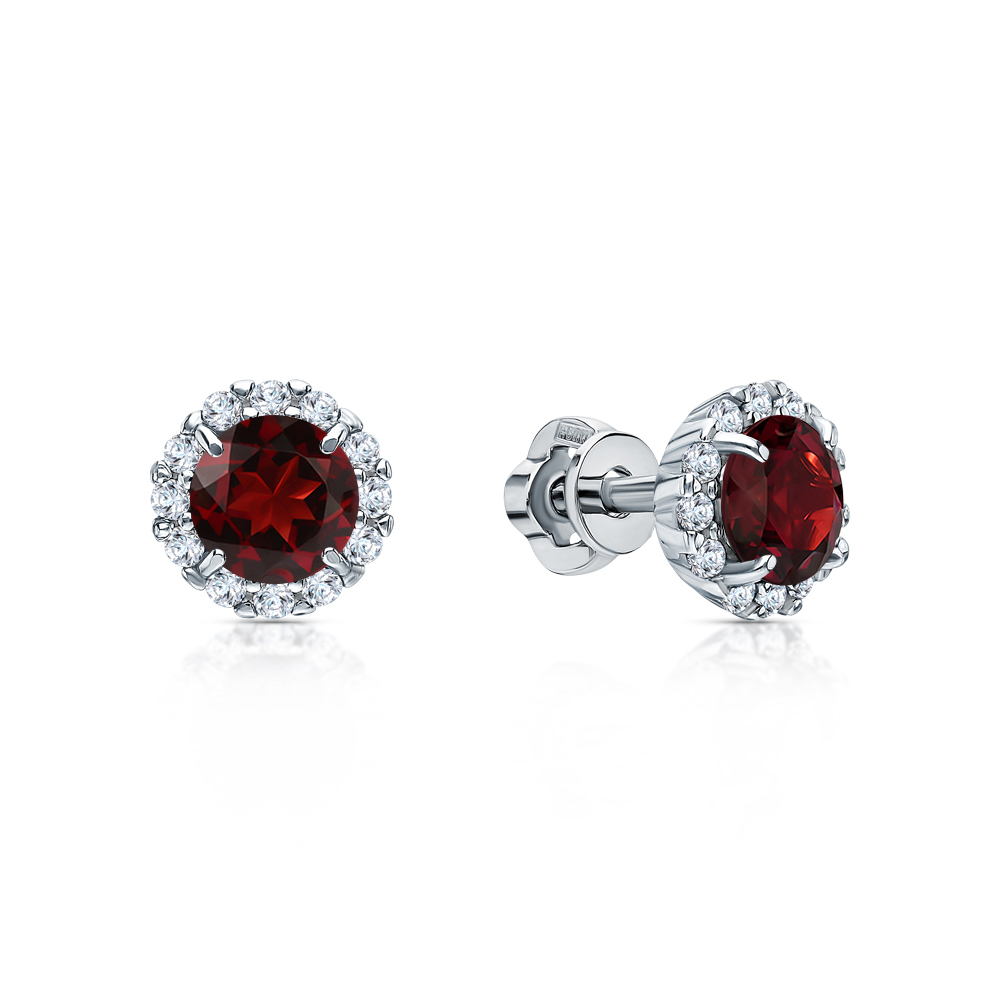 Серебряные серьги с фианитами и гранатами природными