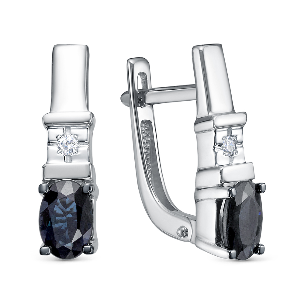 Золотые серьги с бриллиантами природными и сапфирами природными