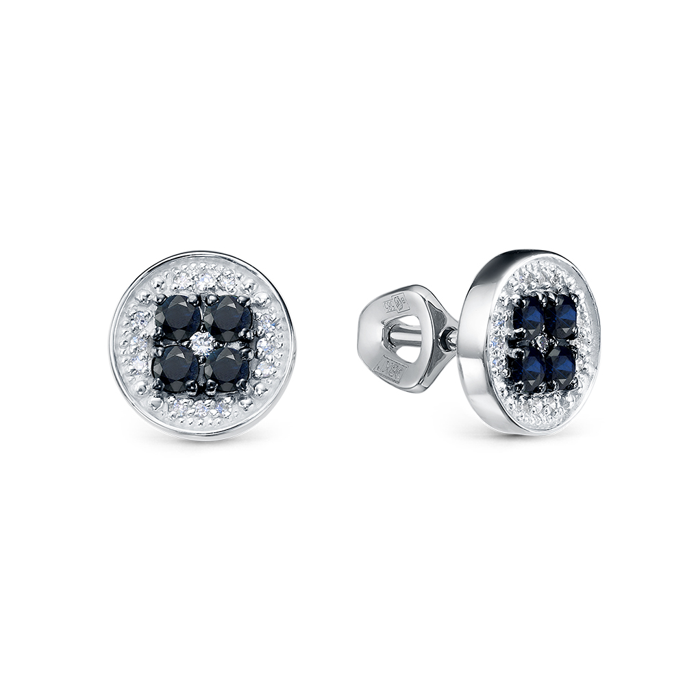 Золотые серьги с бриллиантами природными и сапфирами природными