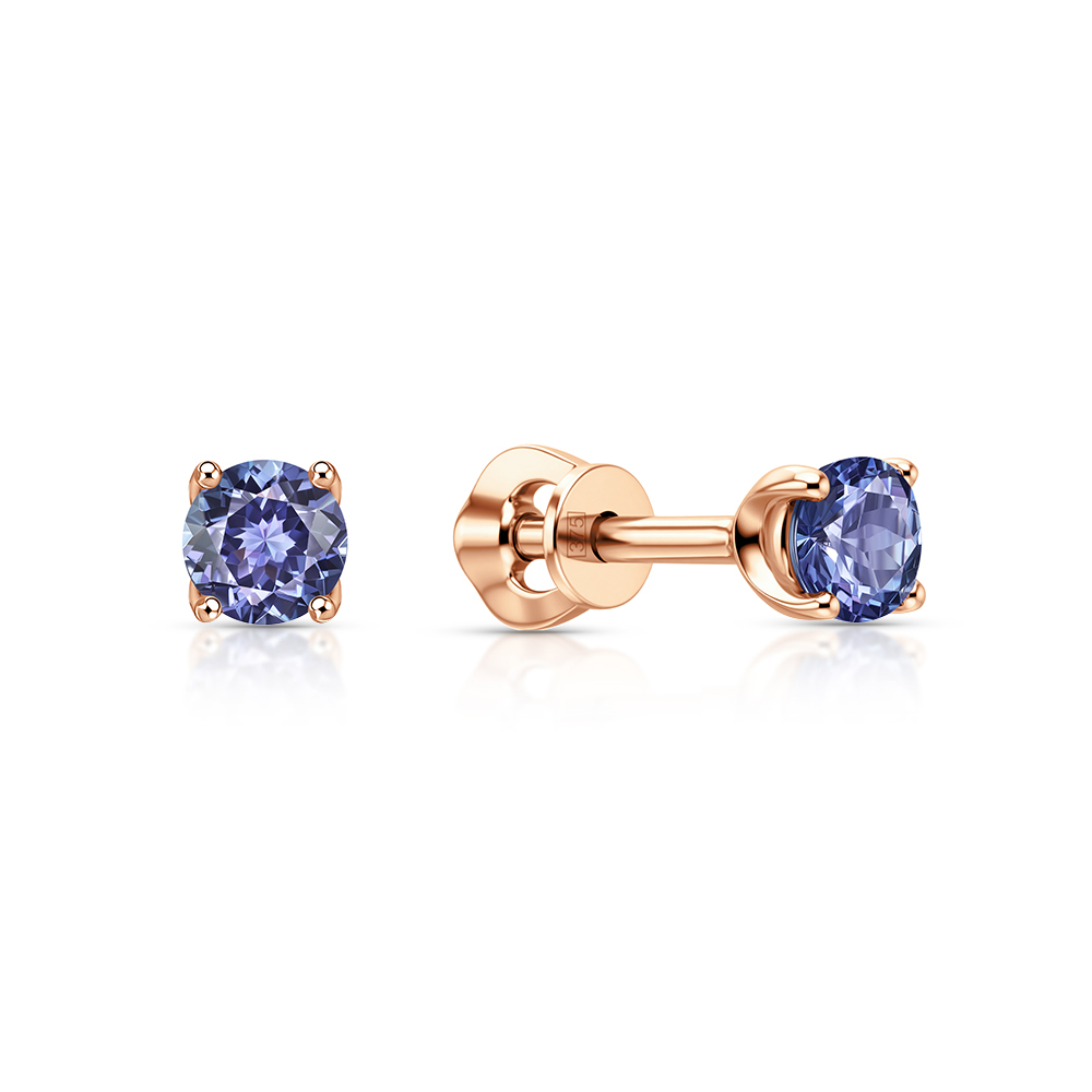 Серьги с 2 танзанитами природными, 0.56 карат;