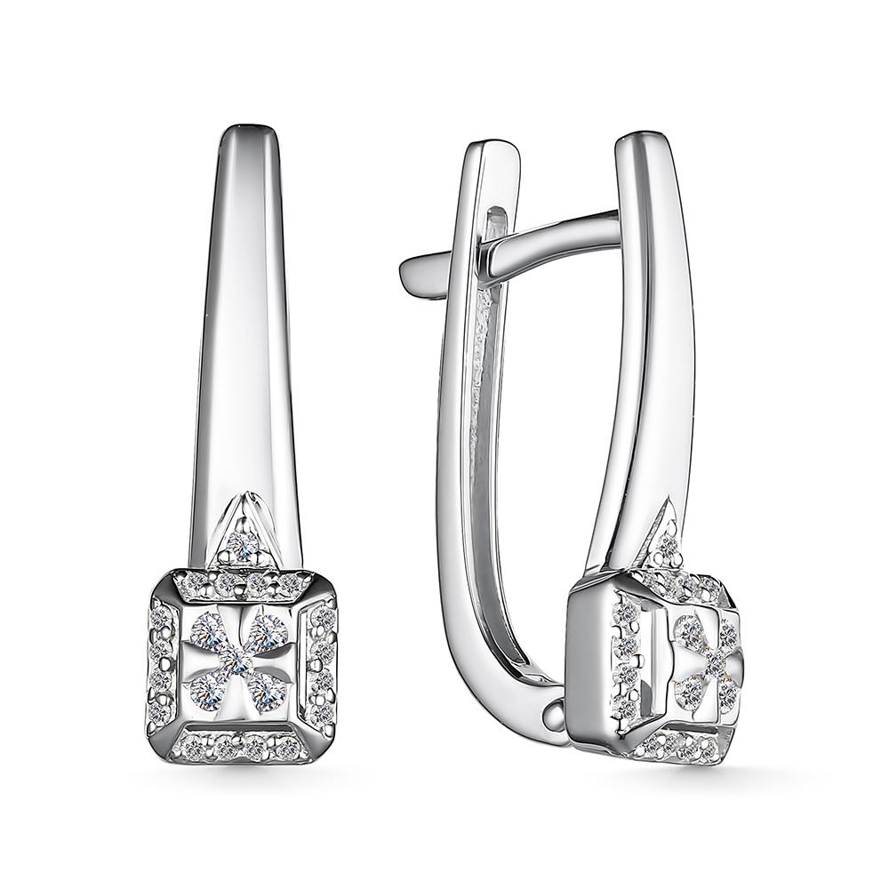 Серьги с 10 бриллиантами природными, 0.06 карат, огранка круг 57 граней, цвет 4, чистота 5, тип огранки А;