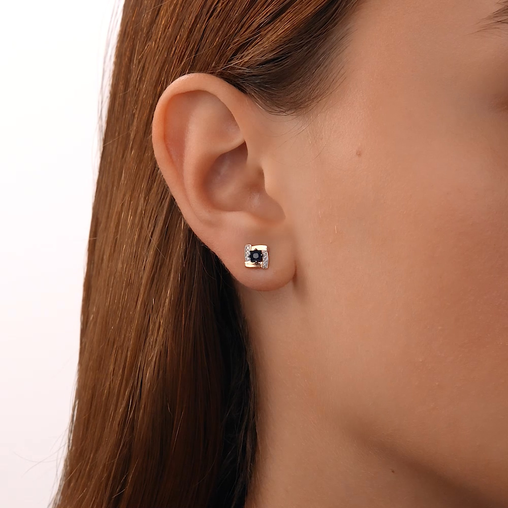 Золотые серьги с бриллиантами природными и сапфирами природными