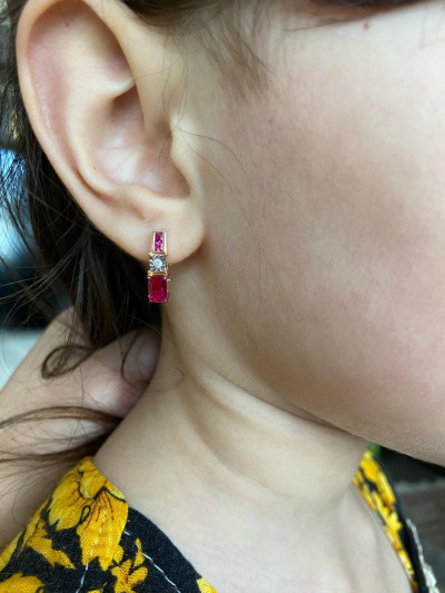 Золотые серьги с бриллиантами природными и рубинами выращенными