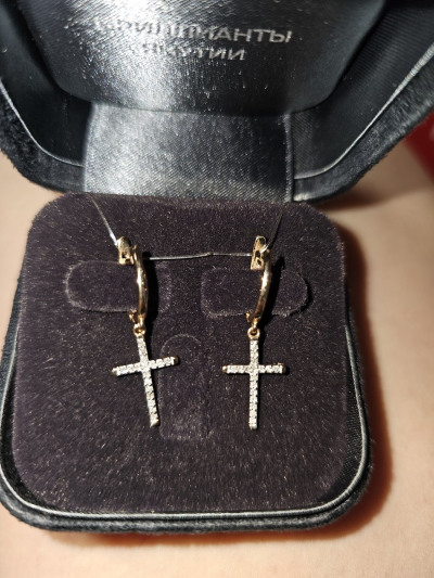 Золотые серьги с бриллиантами природными