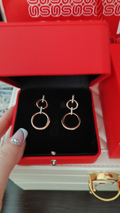 Подарок на 8 марта(восьмёрочки) Поехали за конечном, а муж выбрал мне эти серьги, даже не зная, что я их хотела уже года два☺Очень красивые и удобные🥰