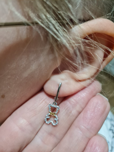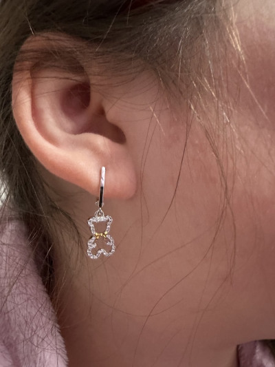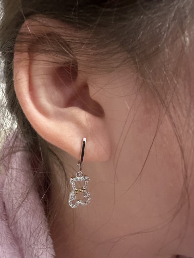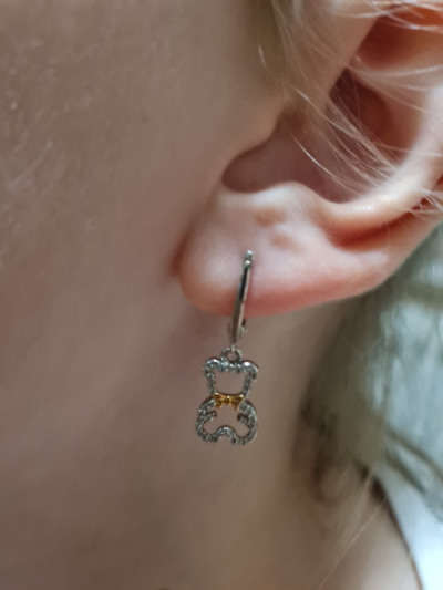 Замечательные серьги, мишка блестит красиво, больше подойдут на тонкую мочку. Дочка 9 лет, просила именно их купить, носит не снимая.