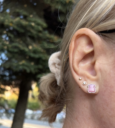 Влюбилась в эти сережки с первого взгляда, очень красиво сочетаются с розовой одеждой.