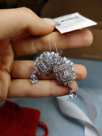Красивые сережки, достаточно объемные. Купила вместе с шейным украшением комплектом.