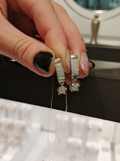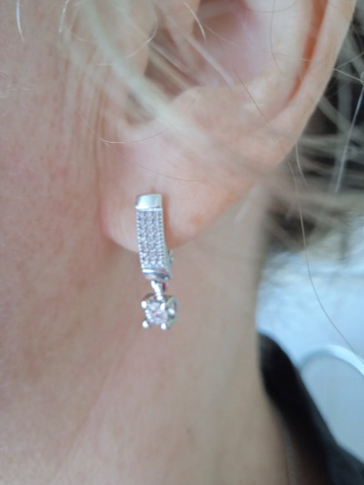 Порадовала себя покупкой этих красивых сережек из белого золота с подвесной частью. Подбирала под свое кольцо. Классно смотрится в комплекте. Фианиты ярко играют на свету! 👍🏻 Рекомендую! 🥰