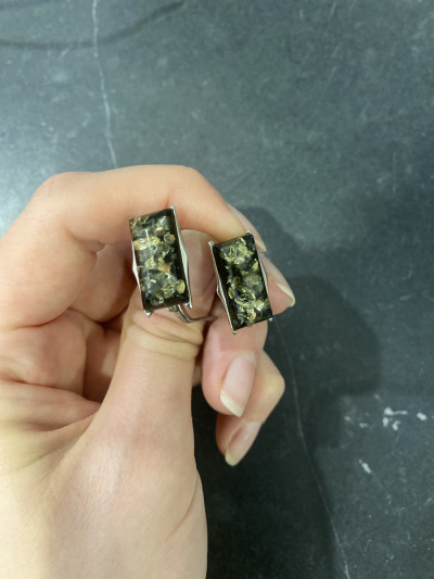 Серебряные серьги с янтарем природным