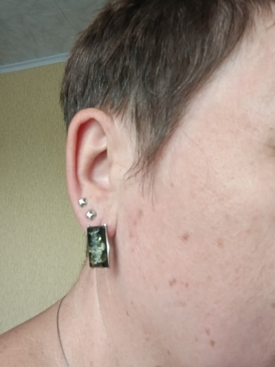 Очень довольна своей покупкой, шикарные серьги. Необычный цвет янтаря и рисунок внутри!! Рада своей покупке!! Получился очень яркий образ!!