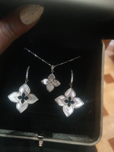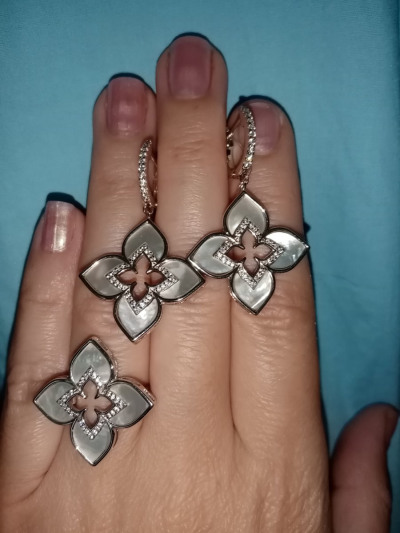Когда увидела серьги в магазине, обомлела от их красоты, сияния перламутра, фианитов и серебра. Но цена была высока. Полгода я про них не забывала. Наконец приобрела с кольцом. Красота неописуемая, особенно на солнце. Летом не останетесь незамеченными. Огромное спасибо любимому санлайт за качественные изделия и скидки! Обожаю перламутр и жемчуг.