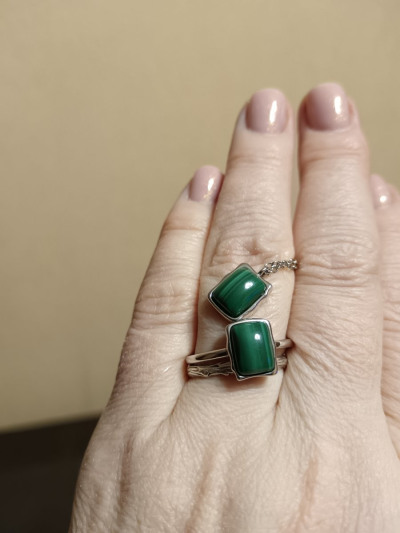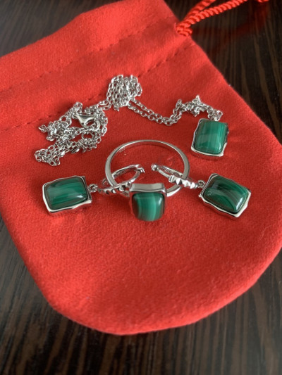 Малахит лучше всего смотрится в серебре. Подобрала отличный комплект.