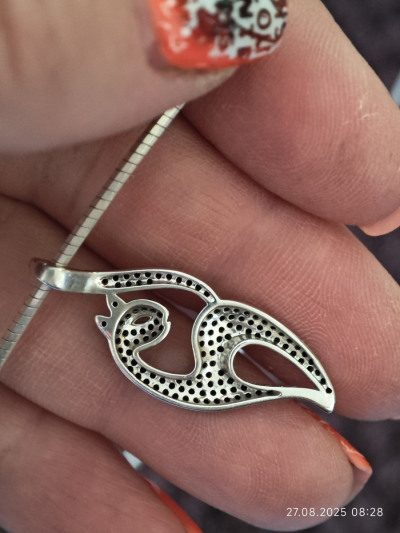 Эту подвеску ношу два года. Она не потемнела, не облезла, все камушки на месте. Одна из моих любимых. Цепочку не меняла