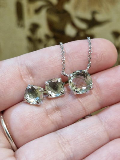Очень симпатичное украшение. При холодном освещении в магазине, цвет казался вообще белым. А уже дома,я смогла оценить всю нежность цвета и красоту игры камня. Взяла вместе с серьгами. Визуально они отличаются из-за того, что в серьгах с обратной стороны имеется стенка из серебра, а у кулона нет. Очень интересный комплект. Закажу ещё кольцо. Спасибо!