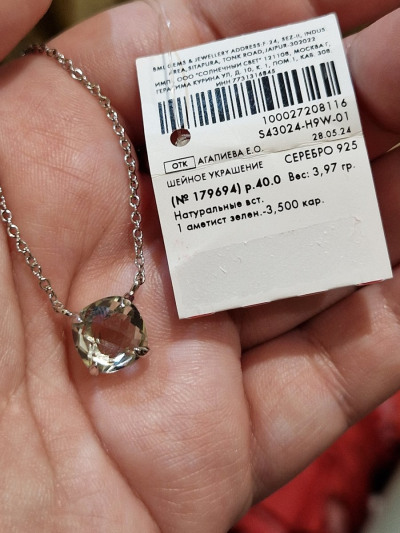 Шейное укр. с 1 аметистом зеленым, 3.5 карат;