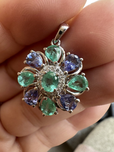 Подвеска с изумрудами и танзанитами. Камушки яркие, красивые🙂👍