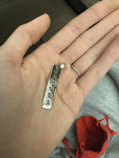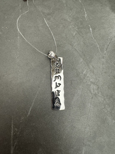Серебряная подвеска с мантрой Ом Мани Падме Хум. «Мани» — это кристалл или драгоценный камень, «падме» — лотос, а «хум» обозначает сердце. Поэтому считалось, что мантру можно понимать как фразу «Вся вселенная подобна драгоценному камню или кристаллу, расположенному в центре моего сердца или в сердцевине лотоса, который есть я».
