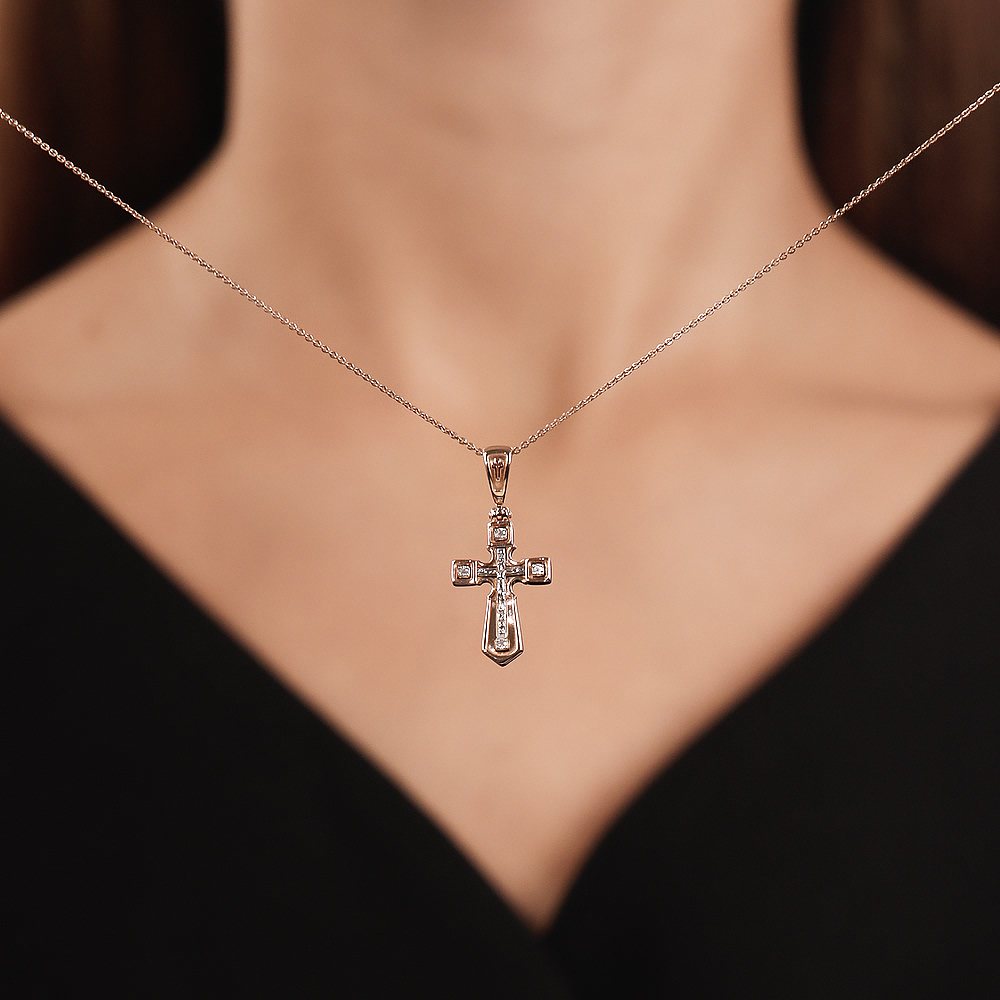 Золотой крестик с бриллиантами природными