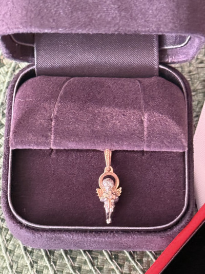 Миленький ангелочек, жаль что бриллиант настолько маленький, что его еле заметно. Сама подвеска очень красивая