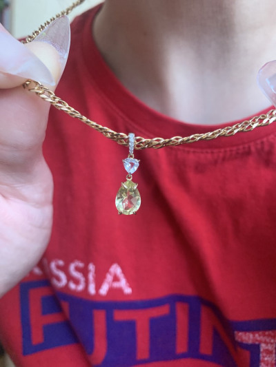 Очень симпатично! Подбирала под колечко, под которое подвески не было, но цвет лимонного кварца подходил, и, не смотря на разную огранку всё же взяла, т.к. и в кольце и в подвеске присутствовал горный хрусталь маленьким сердечком. Подвеска смотрится очень хорошо! Но при покупке обратите внимание на подвесное ушко подвески, проходит ли ваше цепочка, - оно довольно маленькое и узкое. В целом покупкой довольна - подвеска очень мила!
