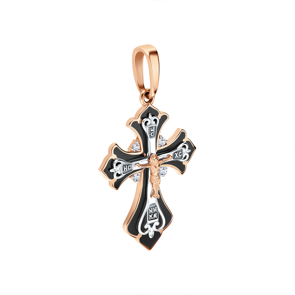 Увидела на сайте и влюбилась.Крестик очень красивый и аккуратный.Бриллианты сверкают .Ушко для средней цепочки